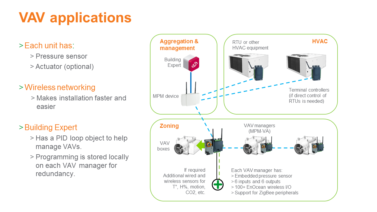 roof top units and VAV boxes with VAV Managers as shown above.